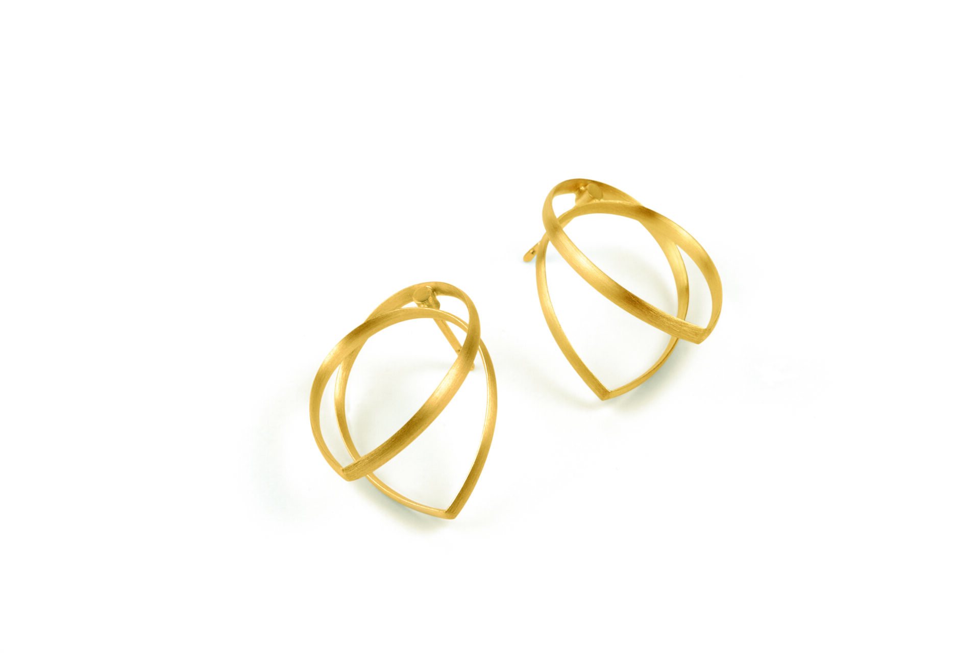 Wie kleine Bäumchen oder Pflanzensprösslinge scheinen diese Schmuckstücke dynamisch schwebend in den Raum zu wachsen. Durch den Navettedraht und die geschwungene Linienführung sind edle, volumenreiche Formen entstanden, die zu luftig leichten und dennoch auffälligen Ohrringen, Ringen und Ketten vollendet wurden.