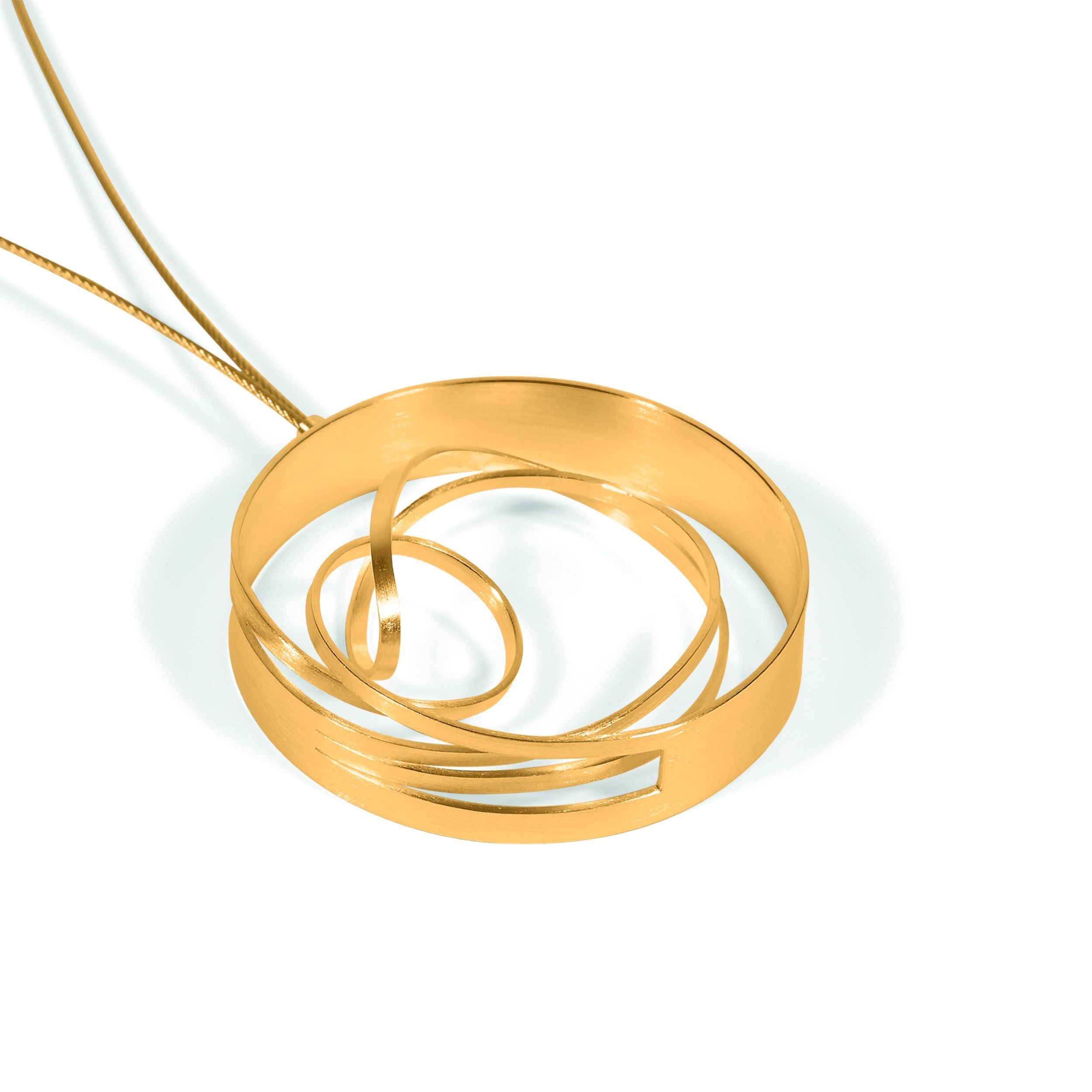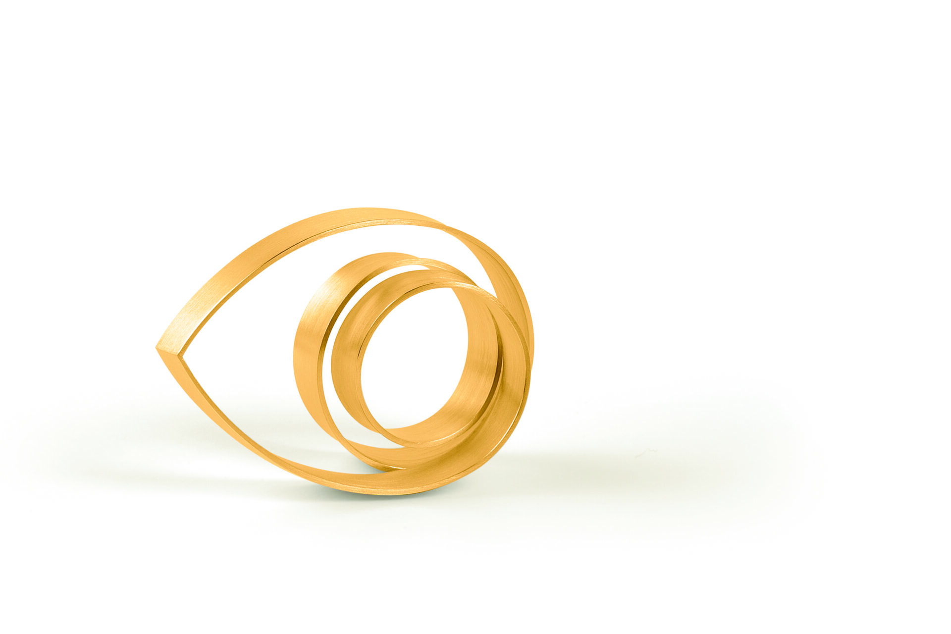 Aus flachen Bändern und einer fließenden Linienführung entsteht eine klare, dynamische Form voller Spannung. Wie bei einem Looping dreht sich bei diesen Schmuckstücken alles mit dem gewissen Schwung.